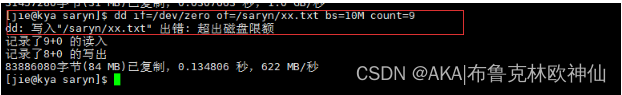 dd if=/dev/zero of=/home/ky17/njzb.txt bs=10M count=12