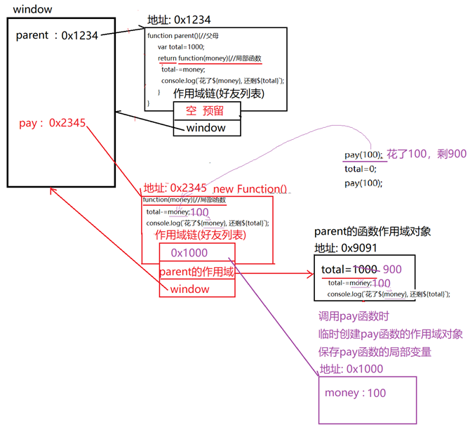 var total=1000;//放在父母函数内,内层函数外,由父母替内层函数代为保管!