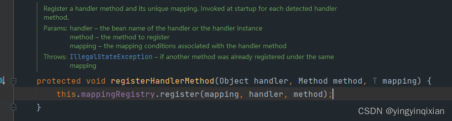 再回到detectHandlerMethods方法中的registerHandlerMethod接口方法,进入registerHandlerMethod方法内部