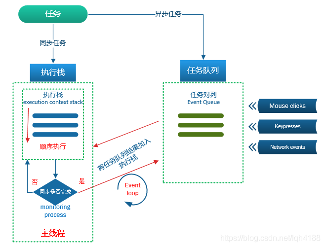 All synchronization tasks are performed on the main thread , Form an execution stack . Asynchronous tasks do not enter the main thread , But into another 【 Task queue 】. Synchronous tasks are executed sequentially , Only the synchronization task in the execution stack is completed , The system will read back the asynchronous tasks that can be executed in the task queue , Will put this asynchronous task from the event queue into the execution stack for execution , So circular , Until all tasks are completed .