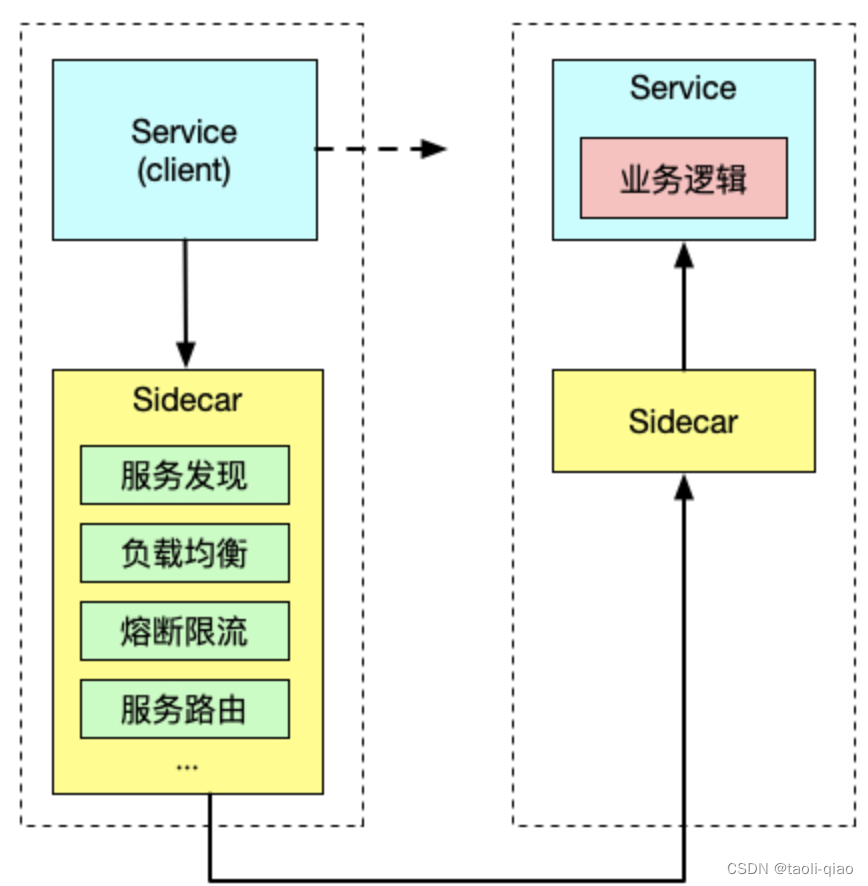 SideCar: Dividing the functions of an application into separate processes can be considered Sidecar Pattern .Sidecar Mode allows you to add more functionality next to your application , Without the need for additional third-party components to configure or modify the application code . It's like connecting Sidecar Like a three wheeled motorcycle , In software architecture , Sidecar Connect to the parent application and add extensions or enhancements to it .Sidecar The application is loosely coupled with the main application . It can shield the differences between different programming languages , Unified implementation of observability of microservices 、 monitor 、 logging 、 To configure 、 Circuit breaker and other functions .sidecar As shown in the figure below