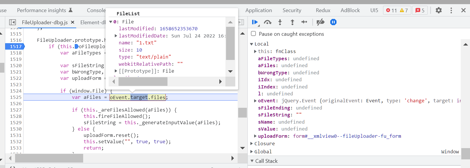 从上图可以看出,SAP UI5 框架从一个 library 文件里,根据 key FILEUPLOAD_BROWSE 读取其对应值,结果为 Browse... 这个字符串。