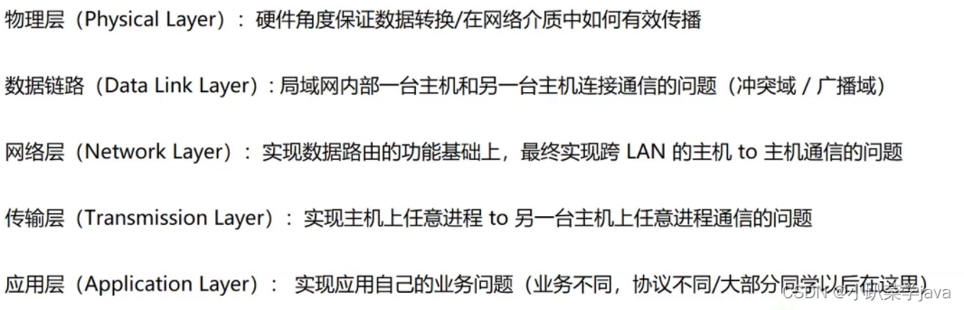 物理层——数据链路链——网络网——运输层——会话层——表示层——应用层