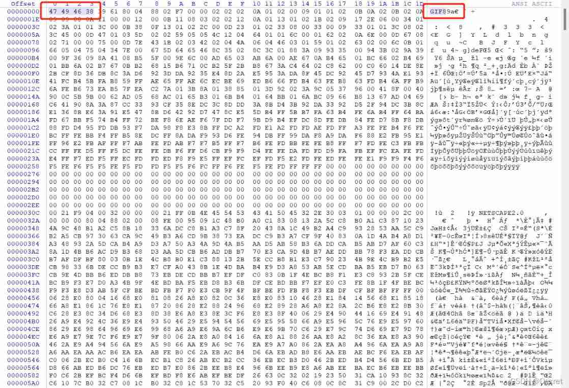 adopt winhex To analyze the gif file , Find the file and ask gif file , But it didn't gif The file header of