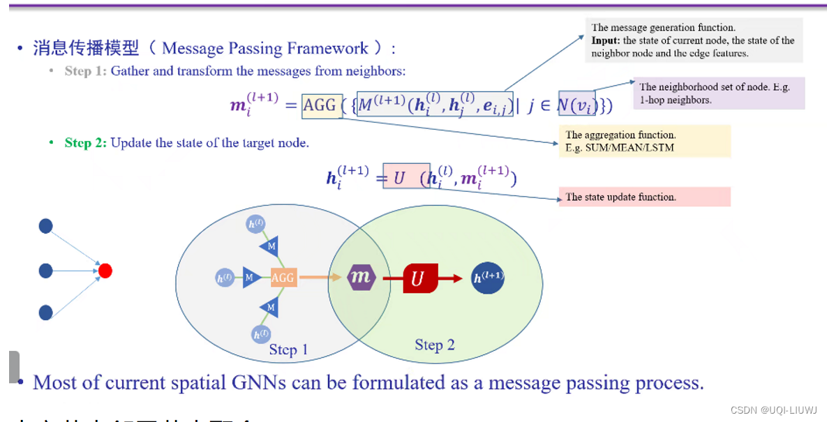 step 2的结果是,整合了step1的结果,和中心节点自身的表示之后,更新了的i的表示