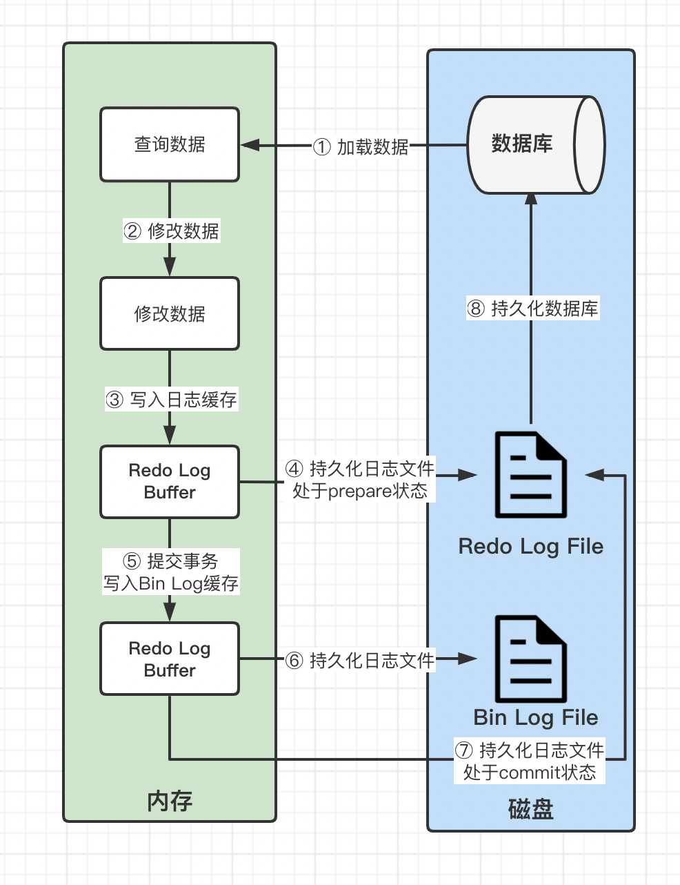 这就是二阶段提交的概念,先写处于prepare状态的Redo Log,事务提交后,再写处于commit状态的Redo Log。
