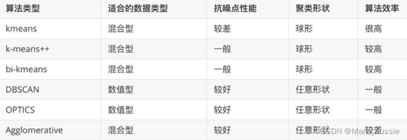 k-means 特定:需要提前确定 k 值、对初始质心点敏感、对异常数据敏感。