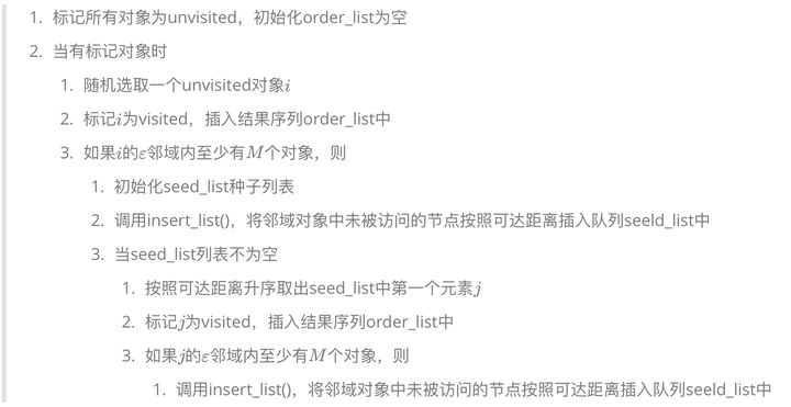 算法最终获取知识是一个输出序列,该序列按照密度不同将相近密度的点聚合在一起,而不是输出该点所属的具体类别,获取该点所属类型,需要再设置参数