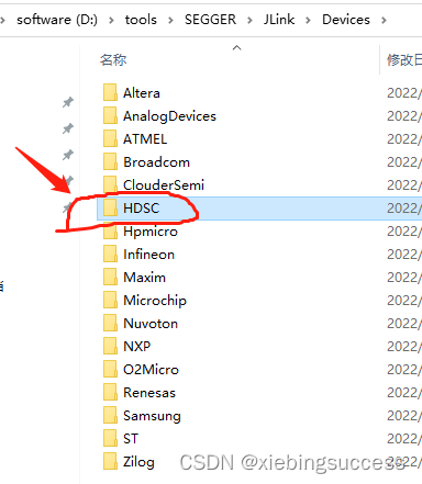 然后将HDSC整个目录拷贝到SEGGER JFLASH的安装目录: