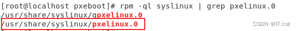 rpm -ql syslinux | grep pxelinux.0 # lookup pxe The location of the bootstrap