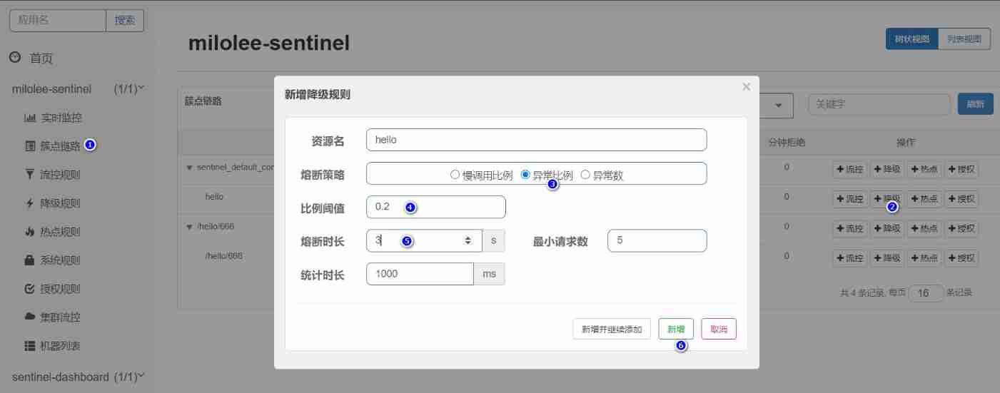 Now we're looking for our resources :hello Configure a flow control rule , The configuration steps are shown in the figure below