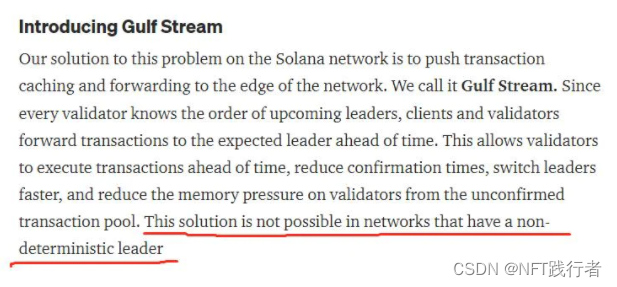 2.Gulf Stream And network downtime :Solana Open the block Leader The list has a more important purpose : With its original Gulf Stream( Gulf Stream ) Mechanism , Improve the speed of network transaction processing .