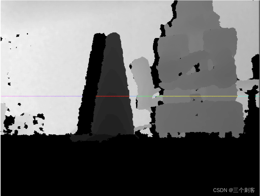 Figure 2 : Picture information released by depth camera , The colored lines in the figure correspond to the data to be converted into radar information