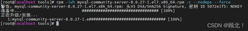 rpm -ivh …… -c --nodeps --force rpm -ivh mysql-community-common-8.0.27-1.el7.x86_64.rpm -c --nodeps --force