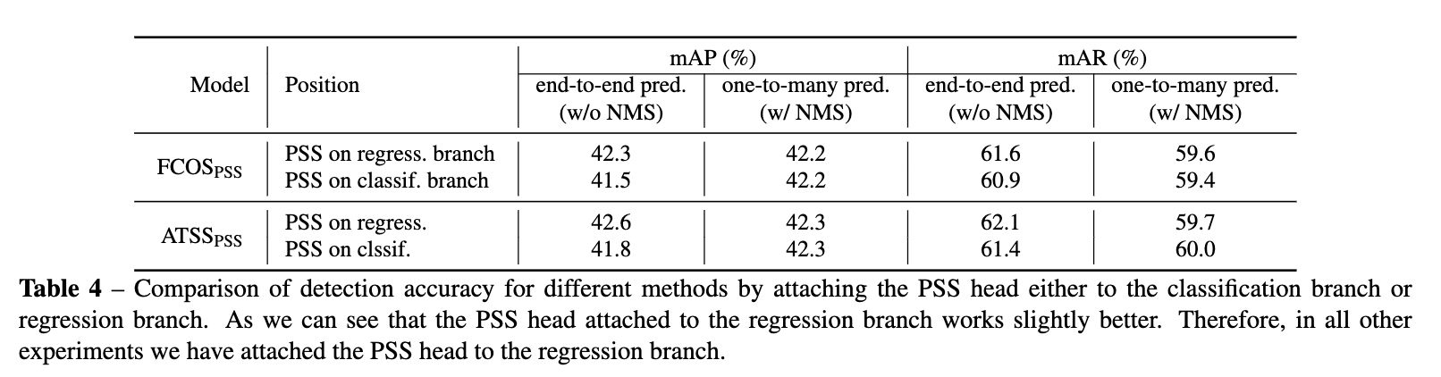 - PSS Branching is very flexible , Essentially equivalent to learnable NMS, Due to joining PSS The branch does not affect the original structure , It can be removed directly PSS Branches directly use NMS.
