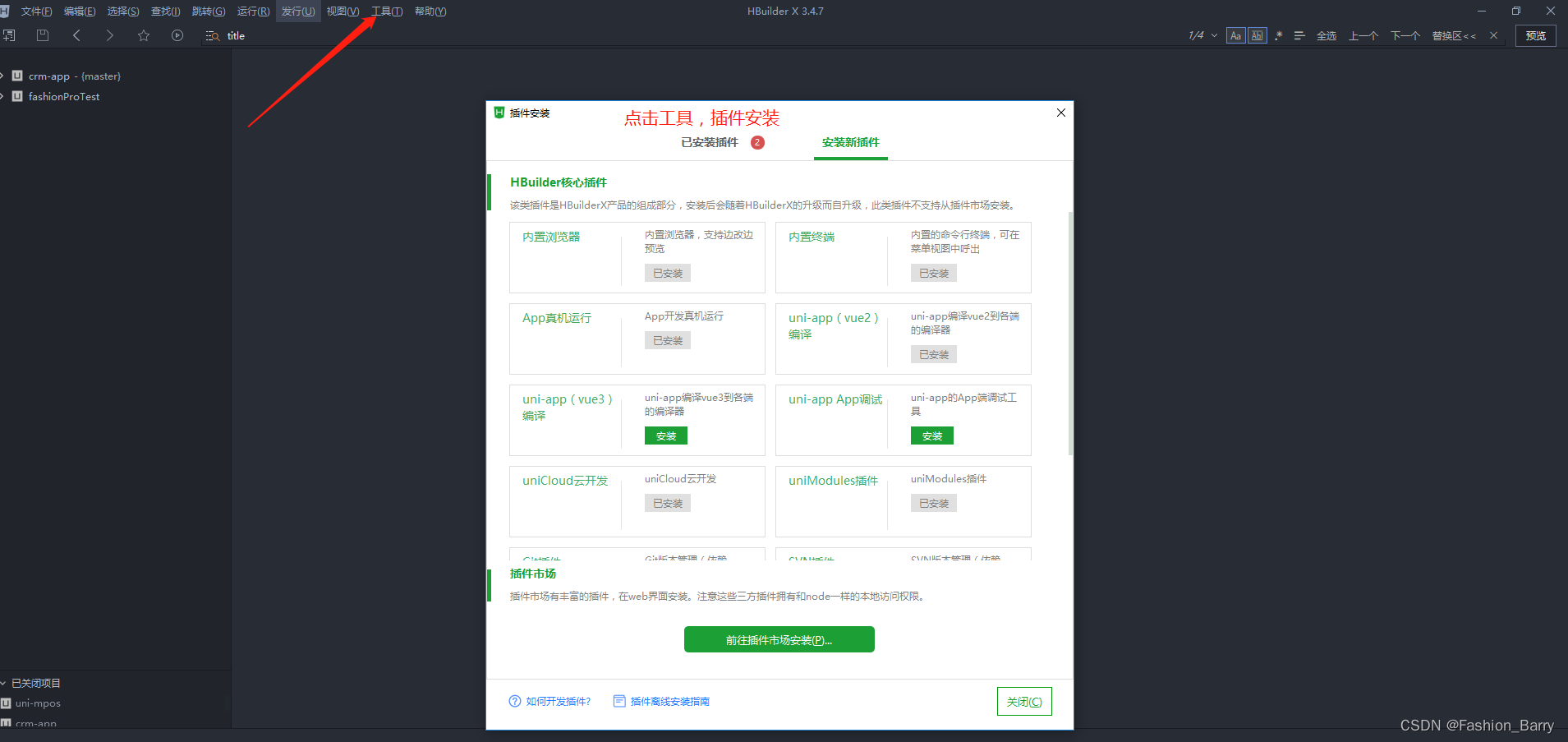 点击工具 --> 插件安装,我们可以看到 Hbuildx 给我们提供了核心插件;