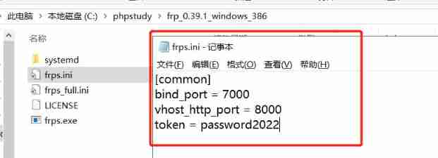 # frps.ini [common] bind_port = 7000 # For authentication , Please modify , Ensure that the server is consistent with the client token = password2022- start-up frps: