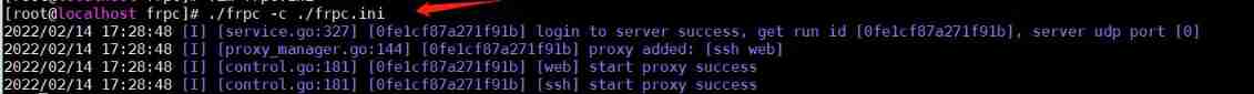 ./frpc -c ./frpc.ini # start-up frpc