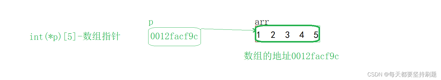 // So the variable p2 The type of int[5]*, Read from left to right is array pointer