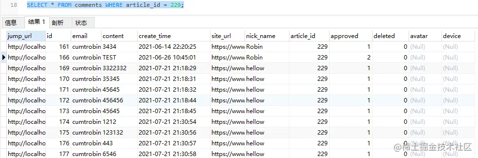 When you want to query the comments under an article , Can be based on conditions article_id Filter out the corresponding comment data .