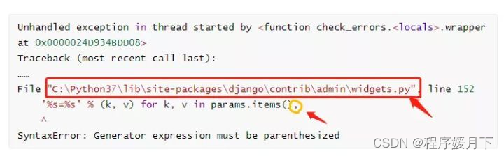 SyntaxError: Generator expression must be parenthesizedYou need to jump to the error reporting path , Remove this comma , Then retype python run_server.py Command to start the project .