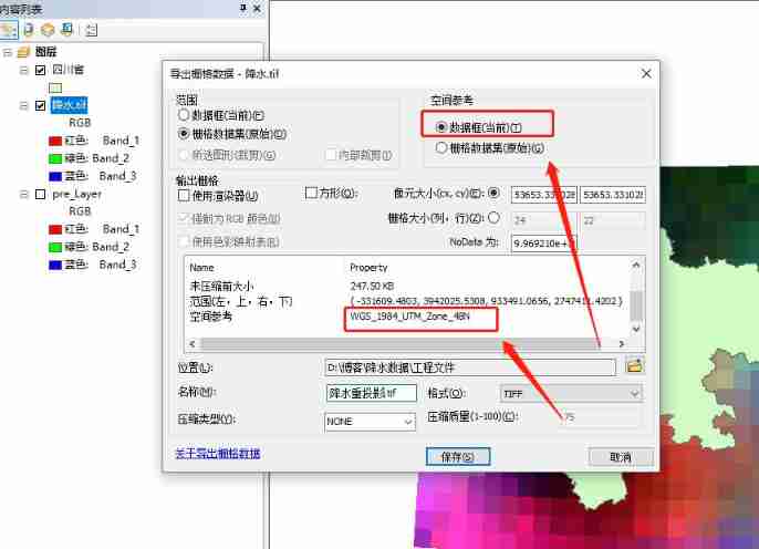 Use the grid export tool , Give precipitation data projection