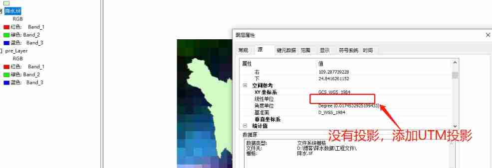 At this time, the precipitation data is not projected , Add projection