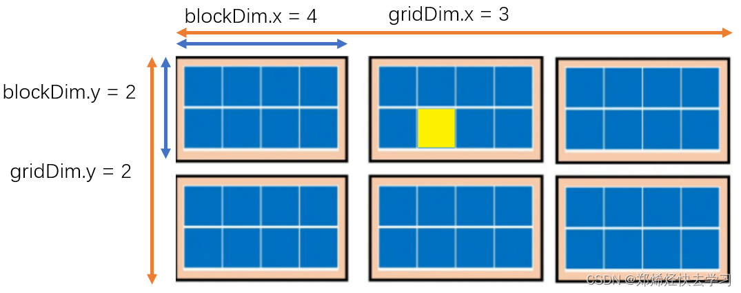In the process above , Called CUDA Kernel function to perform parallel computing ,kernel yes CUDA An important concept in ,kernel Is in device Functions in the upper thread and executed , The kernel function uses __ global __ Symbol declaration , You need to use <<grid,block>> To specify the kernel Number of threads to execute . stay CUDA in , Each thread executes a kernel function , And each thread will be assigned a unique thread number threadID, This ID The value can be passed through the built-in variable of the kernel function threadIdx To obtain a .
