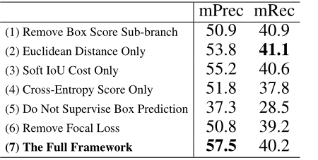(2)-(4) Use a single standard . There is only one criterion for frame correlation and loss ℓ b b o x \ell_{b b o x} ℓbbox.