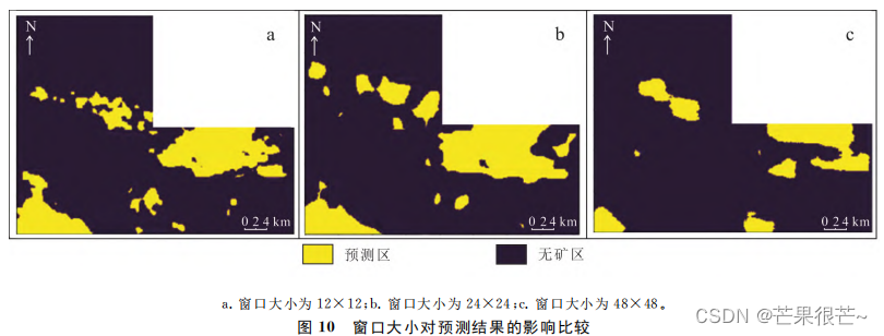 contrast 3 Kinds of prediction results , The overall location of the forecast area is similar . When the window size is 48×48 when , The forecast area is relatively small , At this time, a large number of training samples are generated , The accuracy of the prediction area obtained by the model is high .