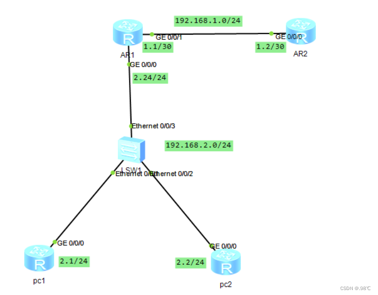 [pc2]ip route-static 0.0.0.0 0 192.168.2.24
