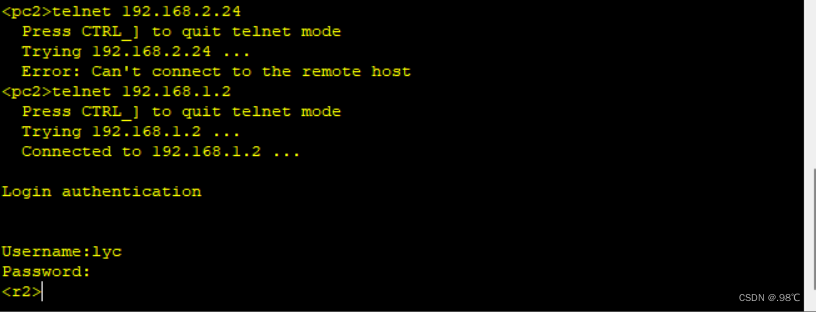 [r2-aaa]local-user lyc service-type telnet