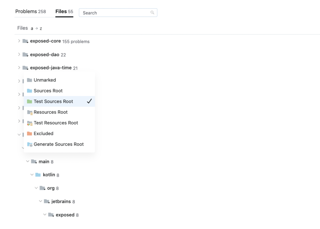 从 Problems(问题)选项卡切换到 Files(文件)选项卡,即可改为以文件 / 文件夹结构浏览相同的问题。
