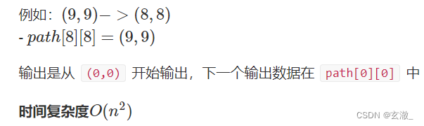 from (n - 1, n - 1) - > (0, 0) Do breadth first search , Using an array to store the current node is From which node