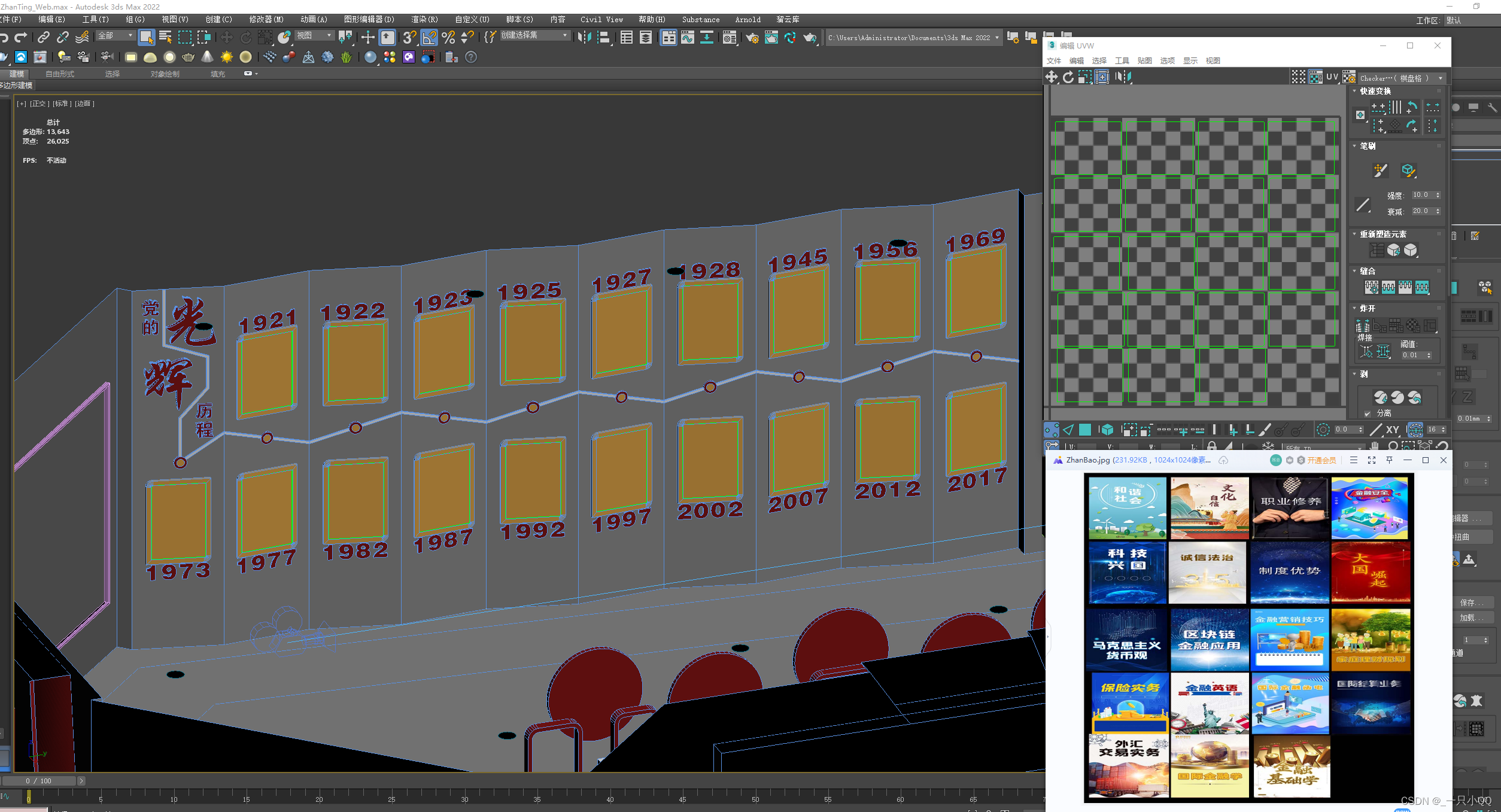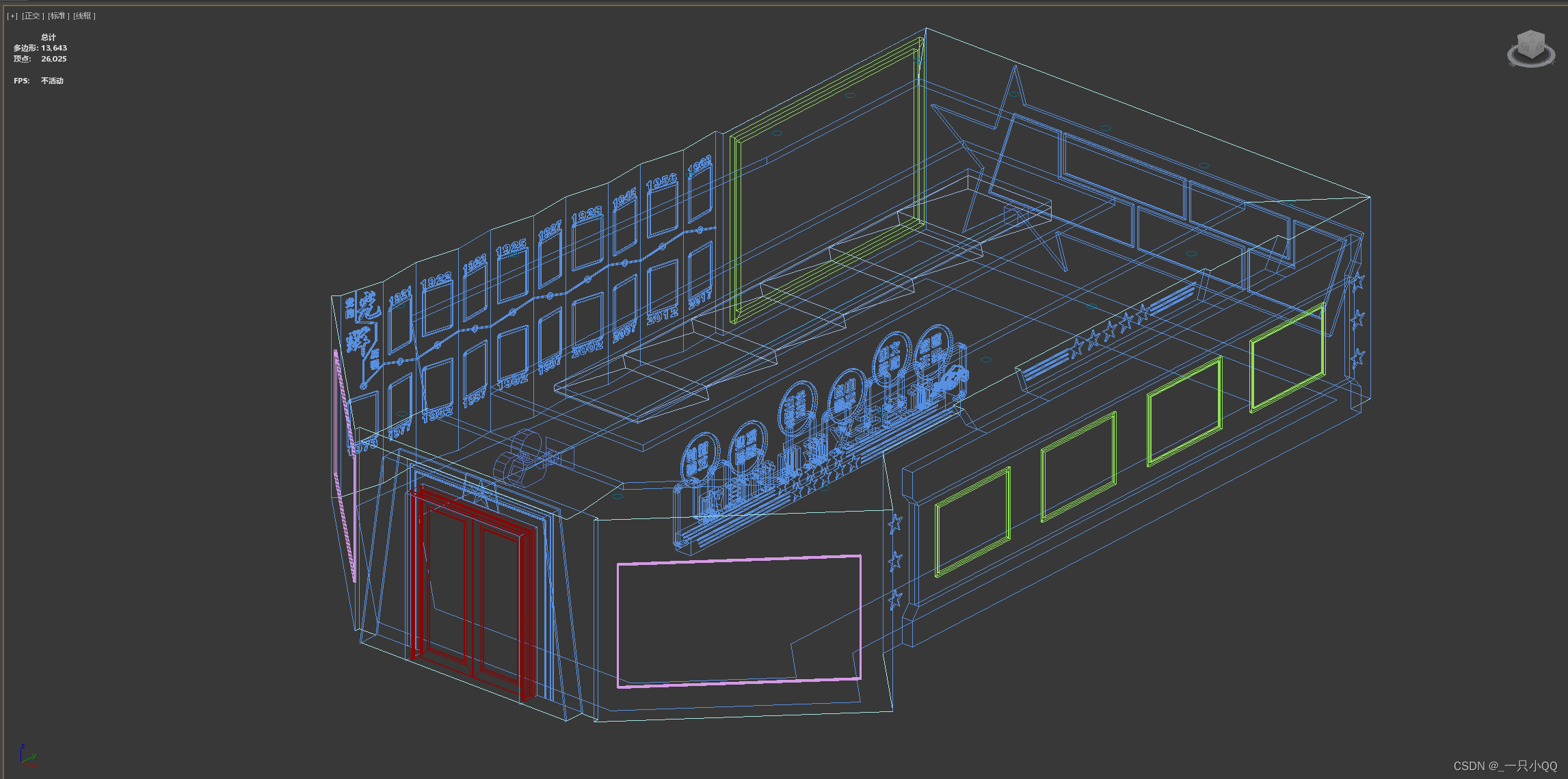 Here is my whole scene model 13000 Face to face , In fact, it can be more streamlined . The main waste of model faces lies in the text model , Text can actually be done with maps . I have little influence here because the scene is relatively small , If the scene is bigger , It is recommended that the text be demonstrated with a map .