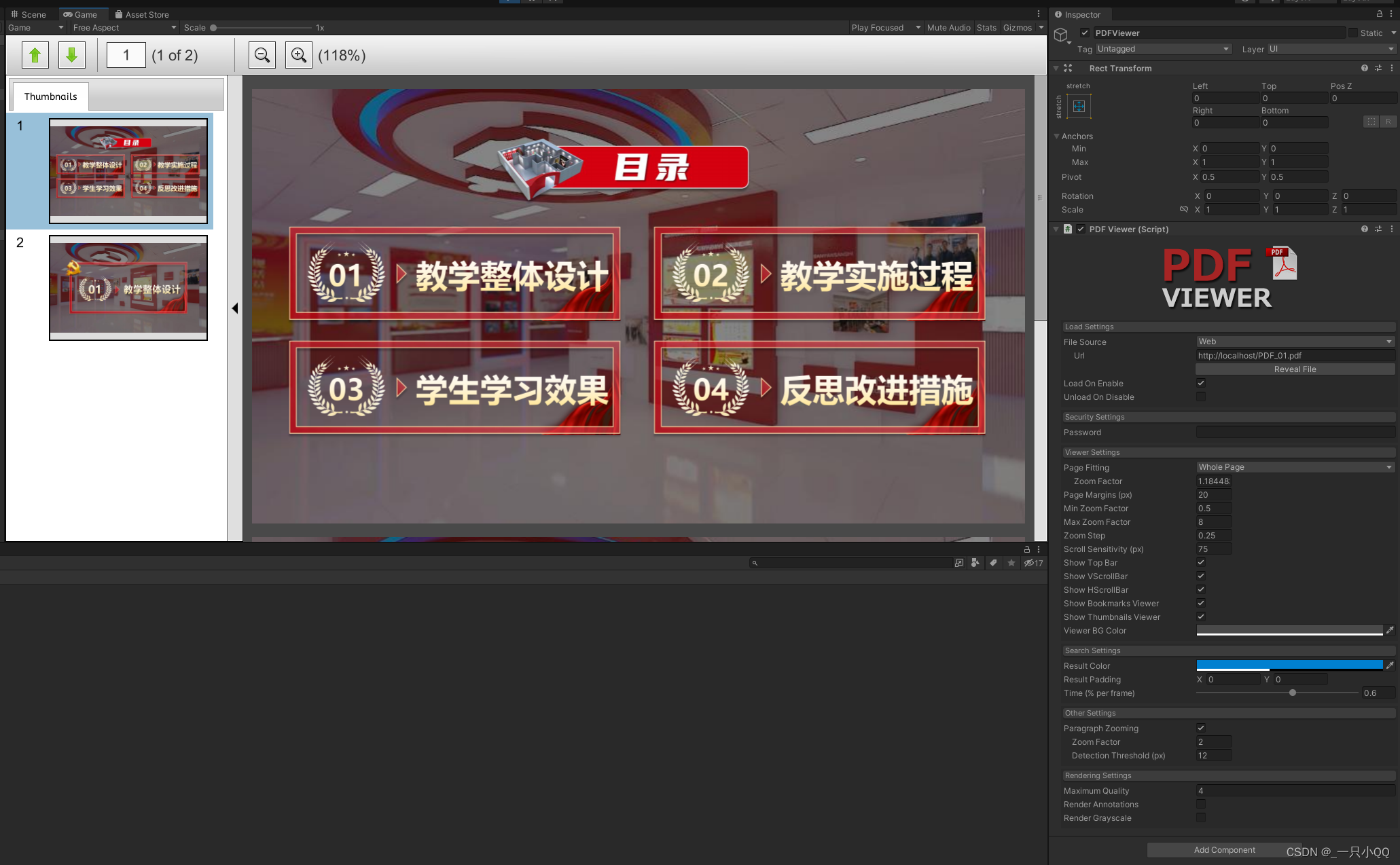 Here I use a plug-in PDFViewer, The effect is shown in the figure . Measured at UnityWebgl Also applicable in