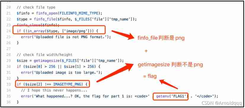 finfo_file The function should open the file directly , To get the file type . and getimagesize The function determines whether the third element in the image size array is int Type 3 To determine the .