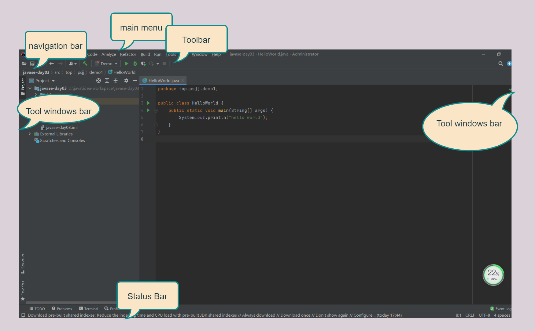 In this chapter, we mainly explain idea window 、 Concept of project and module 、 Add and delete modules .