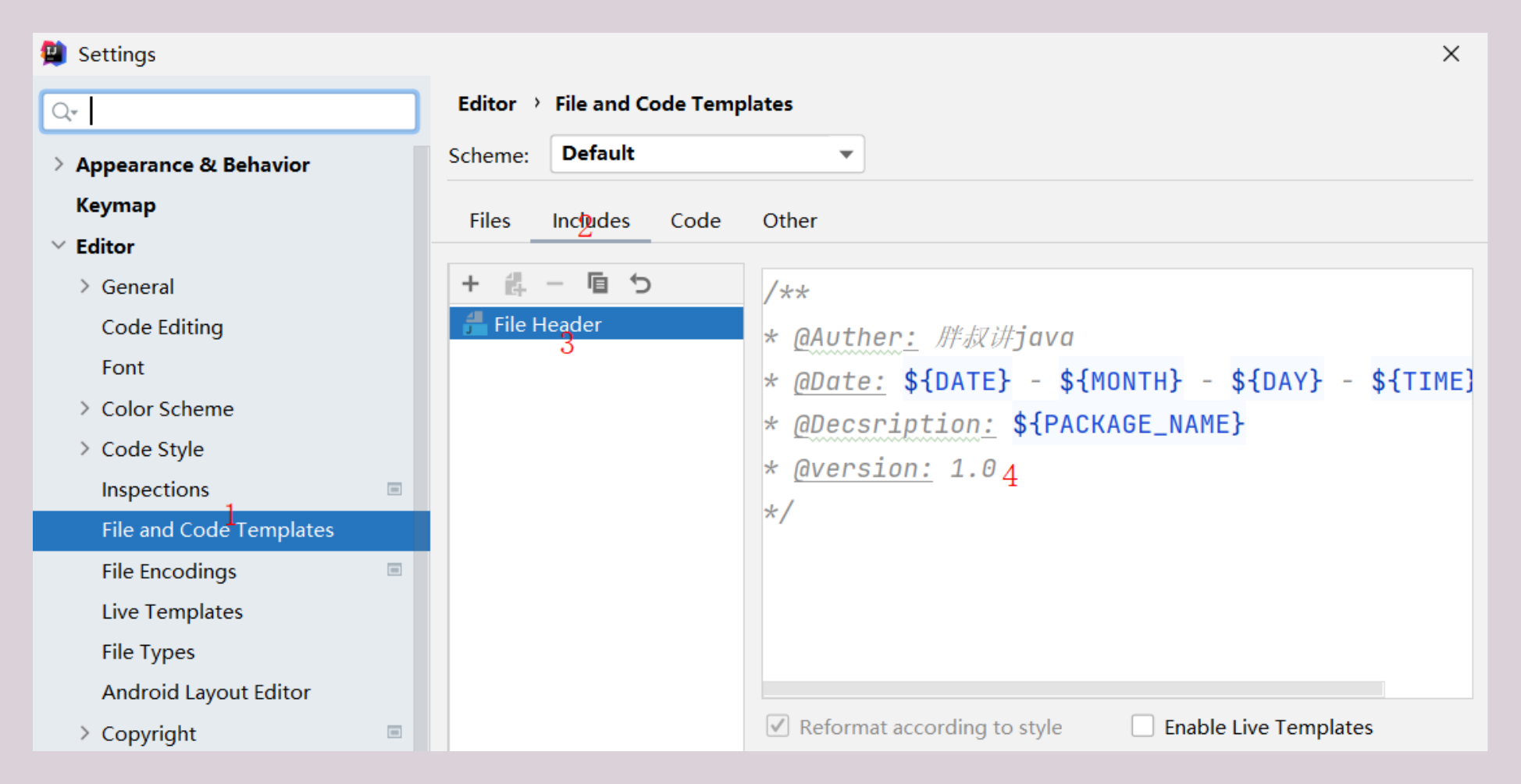 Configure some acronyms of common codes , For example, the input psvm Generate main Method , Such template settings are code templates .