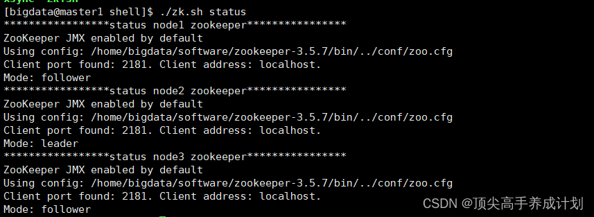 ssh $host /home/bigdata/software/zookeeper-3.5.7/bin/zkServer.sh $1