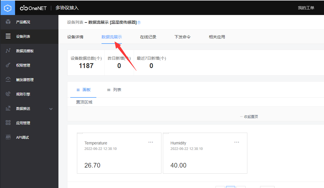 Go through the front matting , We “ On the cloud ” The most exciting part of our journey is coming . Upload the temperature and humidity data of the environment where the device is located to the cloud !