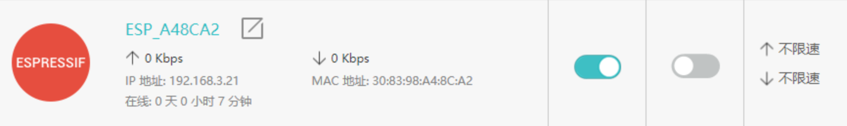 After burning , The connection module restarts Arduino. In the router management interface “ Connected device ” page , See our WiFi equipment , That means success !