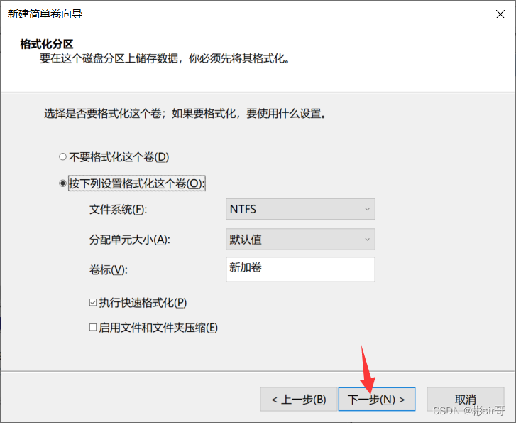 7、 New simple volume wizard , Set according to the prompt , Click on “ next step ”, Finally, click “ complete ”