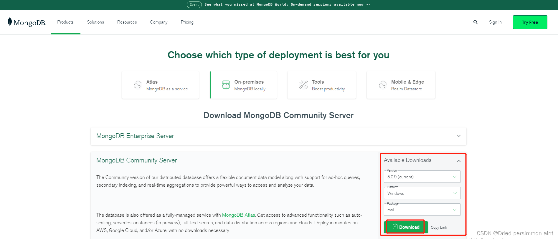 MongoDB Precompiled binary package download address :MongoDB Community Download | MongoDBDownload the Community version of MongoDB's non-relational database server from MongoDB's download center.https://www.mongodb.com/try/download/community