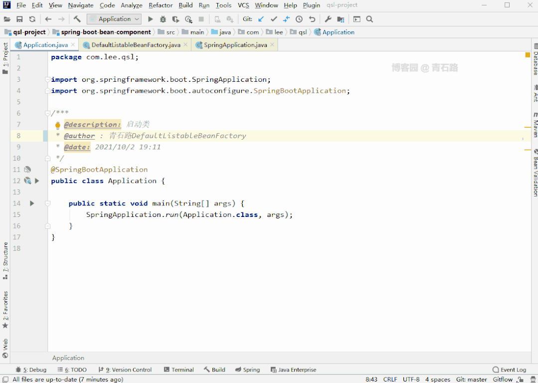 The bean 'userManager', defined in class path resource [com/lee/qsl/config/UserConfig.class], could not be registered. A bean with that name has already been defined in file [D:\qsl-project\spring-boot-bean-component\target\classes\com\lee\qsl\manager\UserManager.class] and overriding is disabled.我们来跟下源码,主要看看与Spring 5.0.7.RELEASE的区别。