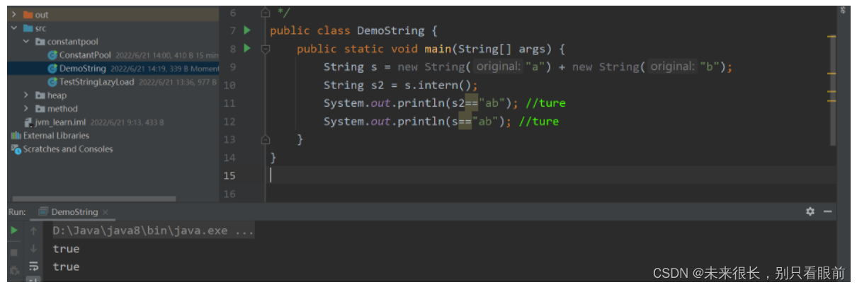 System.out.println(s3==s5); //ture