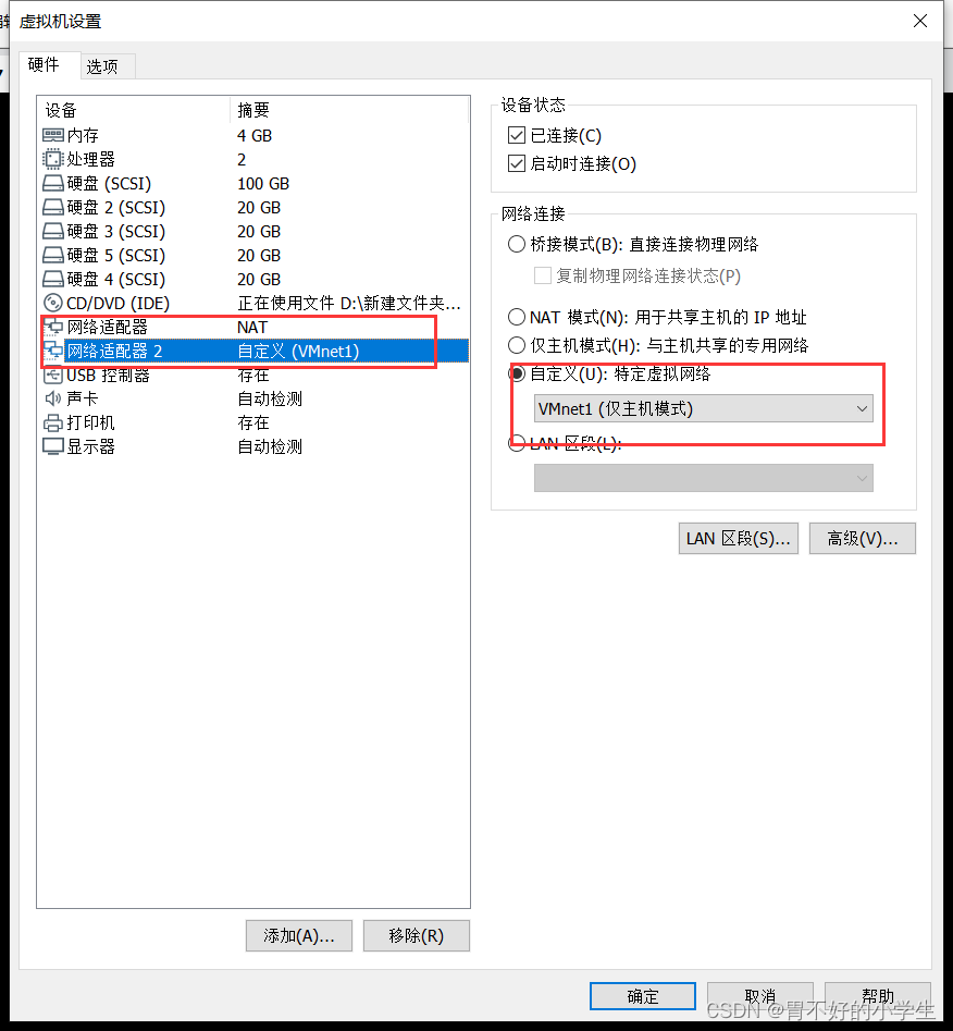 Let's create a new virtual machine , Open it directly without configuring the system CD Set its network card to VMnet1