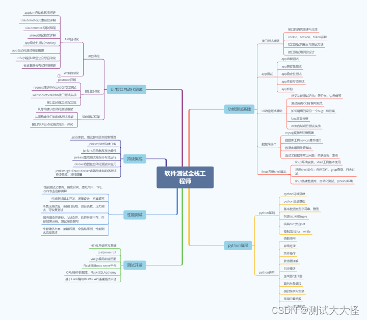 2、掌握一门编程语言,Python或者Java都行,会了Python之后会灵活一些,能够写一些脚本或者小型的应用,将来在面对测试和运维之间的区域时,去部署和维护一些web应用和测试服务器,Python就会变得非常有用。如果是掌握Java,在面对Java写的测试框架的时候,能够很好的处理好测试与开发交叉的领域。在面试过程中,大概率也会碰到问你jvm的问题。