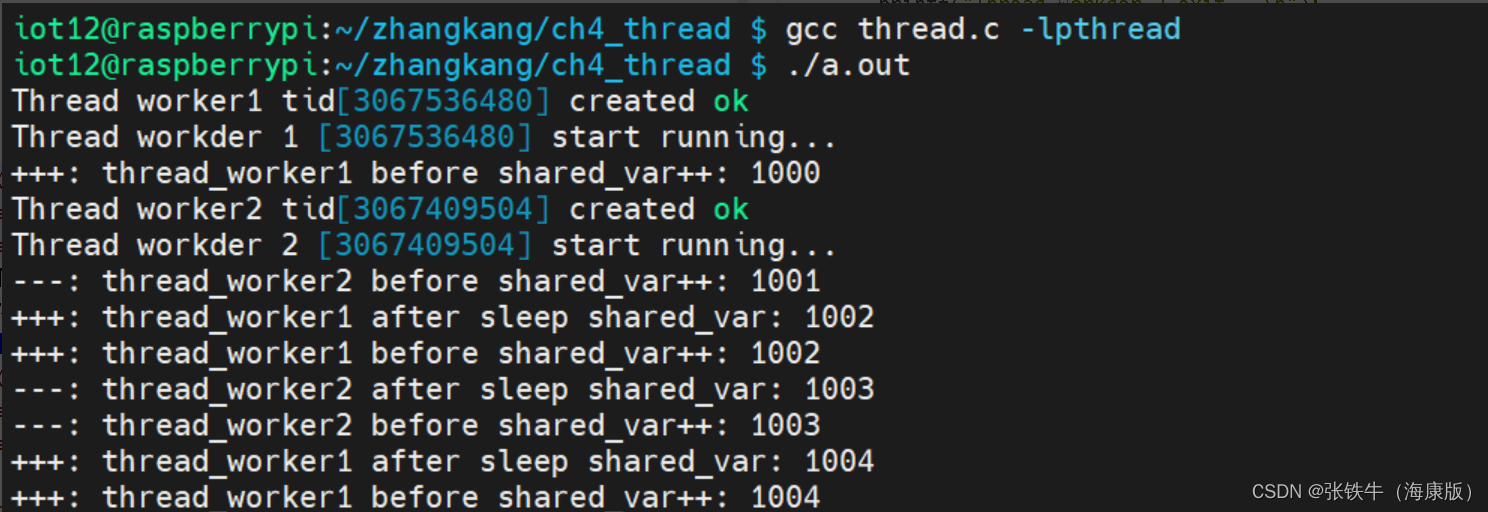 pthread_create(&tid, NULL, thread_worker2, &shared_var);//创建子线程2;