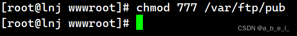 chmod 7T7 /var/ftp/pub/# Access is anonymous ftp Under the root directory of pub Set the maximum permissions for subdirectories , For anonymous users . Upload data